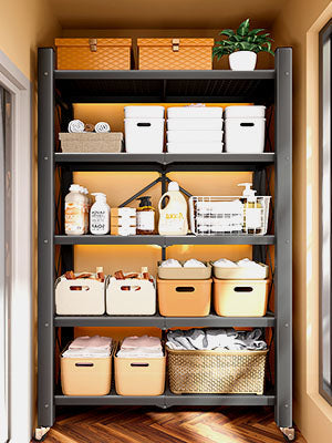 Étagères de rangement en métal robustes à 5 niveaux avec roues et pliable
